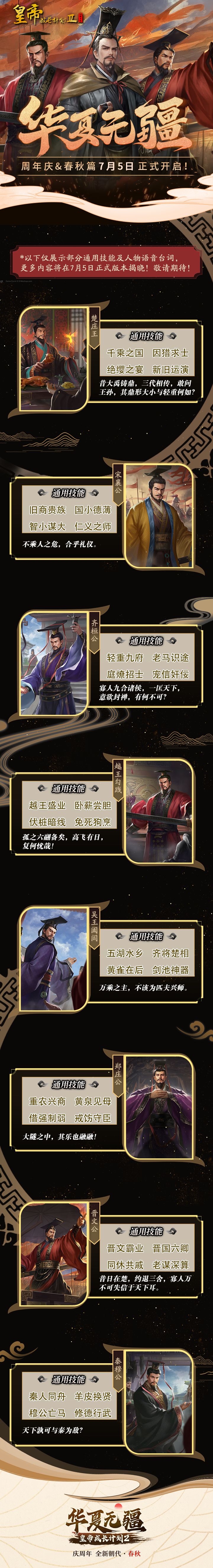 全新内容全面启航,让我们共同期待《皇帝成长计划2》7月5日周年庆&春秋版本的开启!