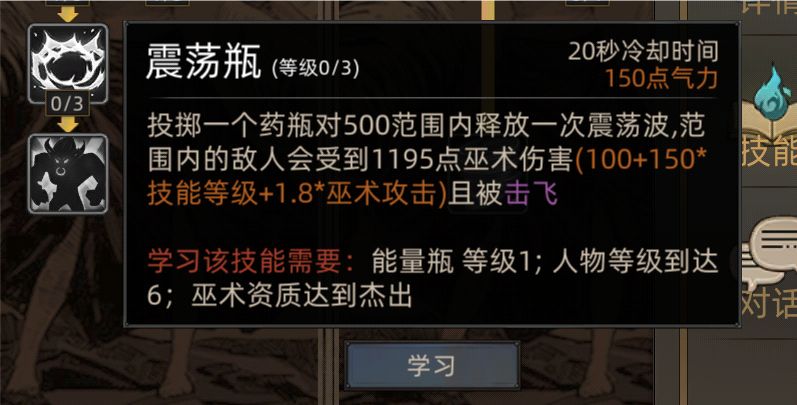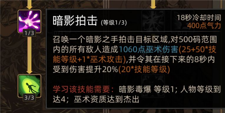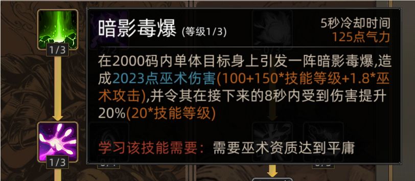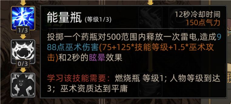 【详解】没什么必点技能但根据我实用发现,这个巫术的特效是几大巫术里面最炫酷的,控制效果和伤害都比较给力,有兴趣的可以一试