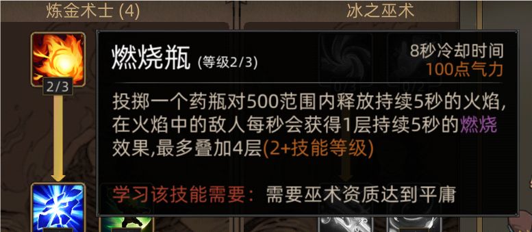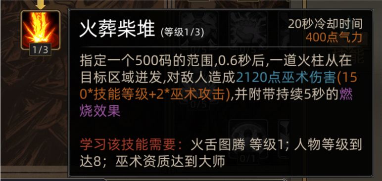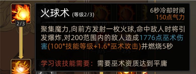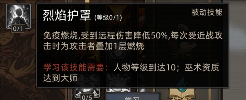 必点!!!可以说,学习火系巫术就是为了这个技能,哪怕其他都不点也要点这个!无论你是不是肉盾,他对你都有很大用处。也可以给一些有大师巫术资质的同伴点这个技能
