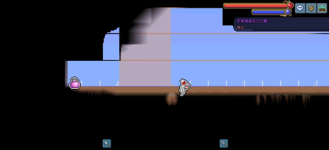 AI:一阶段受到伤害时召唤仆从,快速跳向玩家试图踩踏玩家,发射皇家凝胶,史莱姆皇后会在跳跃几下后随机选择这两个技能的其中一个。二阶段她会起飞,迅速向十个方向发射皇家凝胶,距离玩家够近时会试图飞到玩家上方并下落