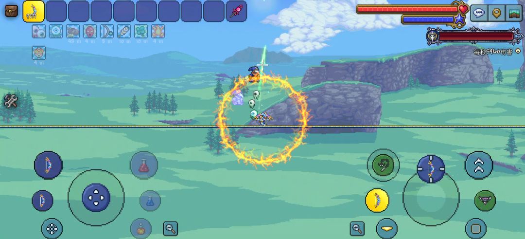 饰品:烈焰之翼 水陆两用靴 绿气球 克苏鲁护盾 游侠徽章 月亮石/箭袋