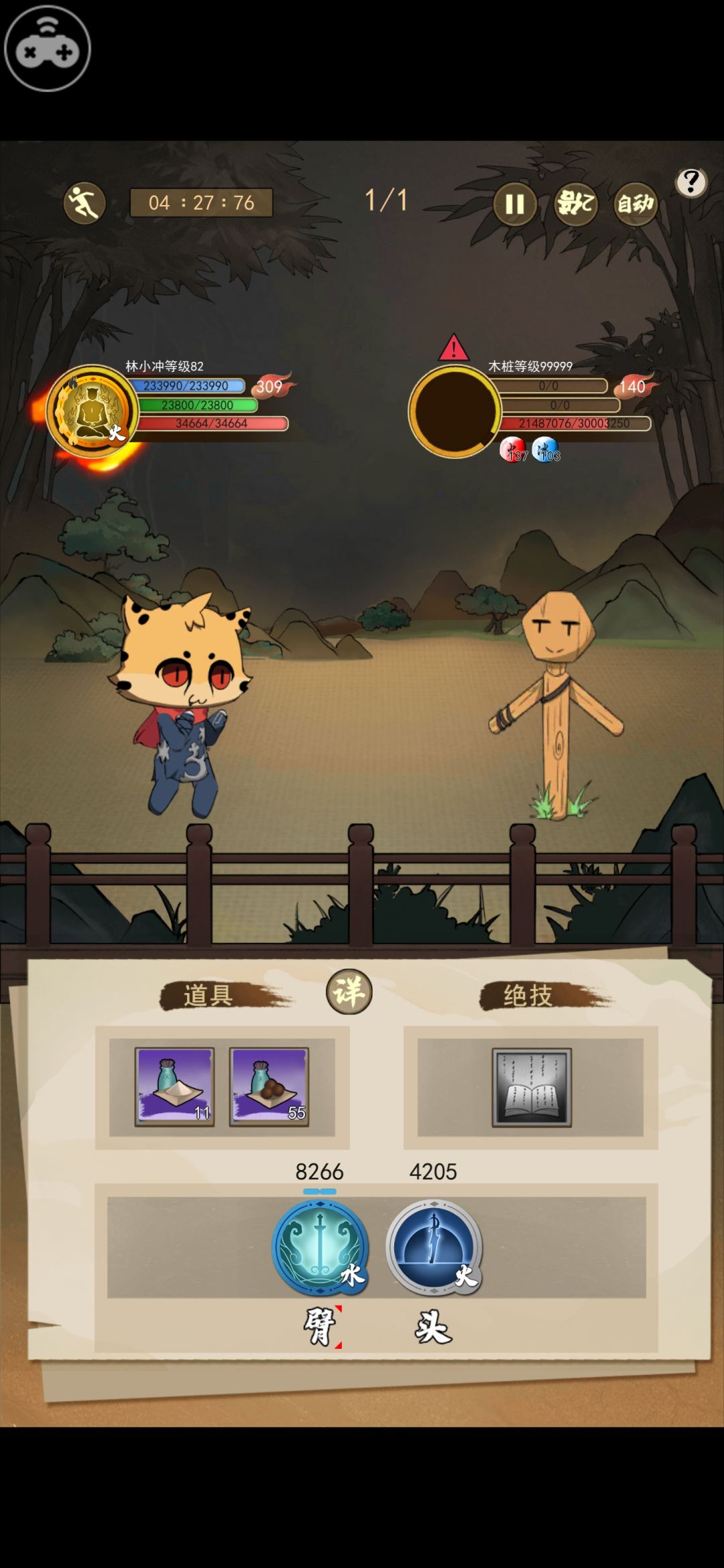 和木桩进行了两次友善的pk