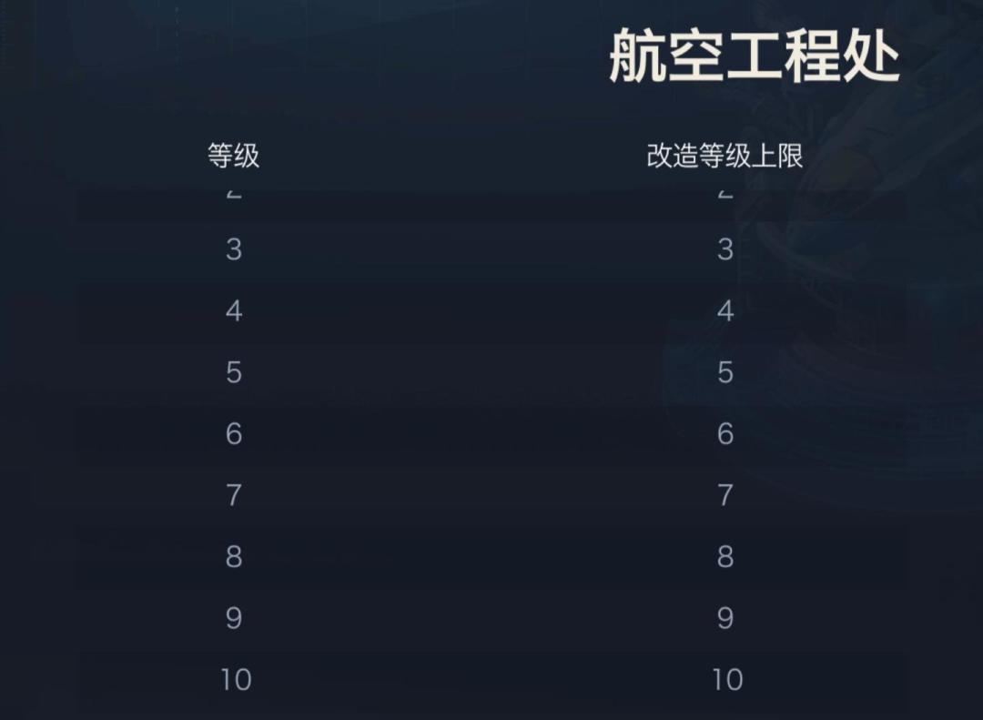 2、改造有等级上限,升级航空工程处可提高改造等级上限