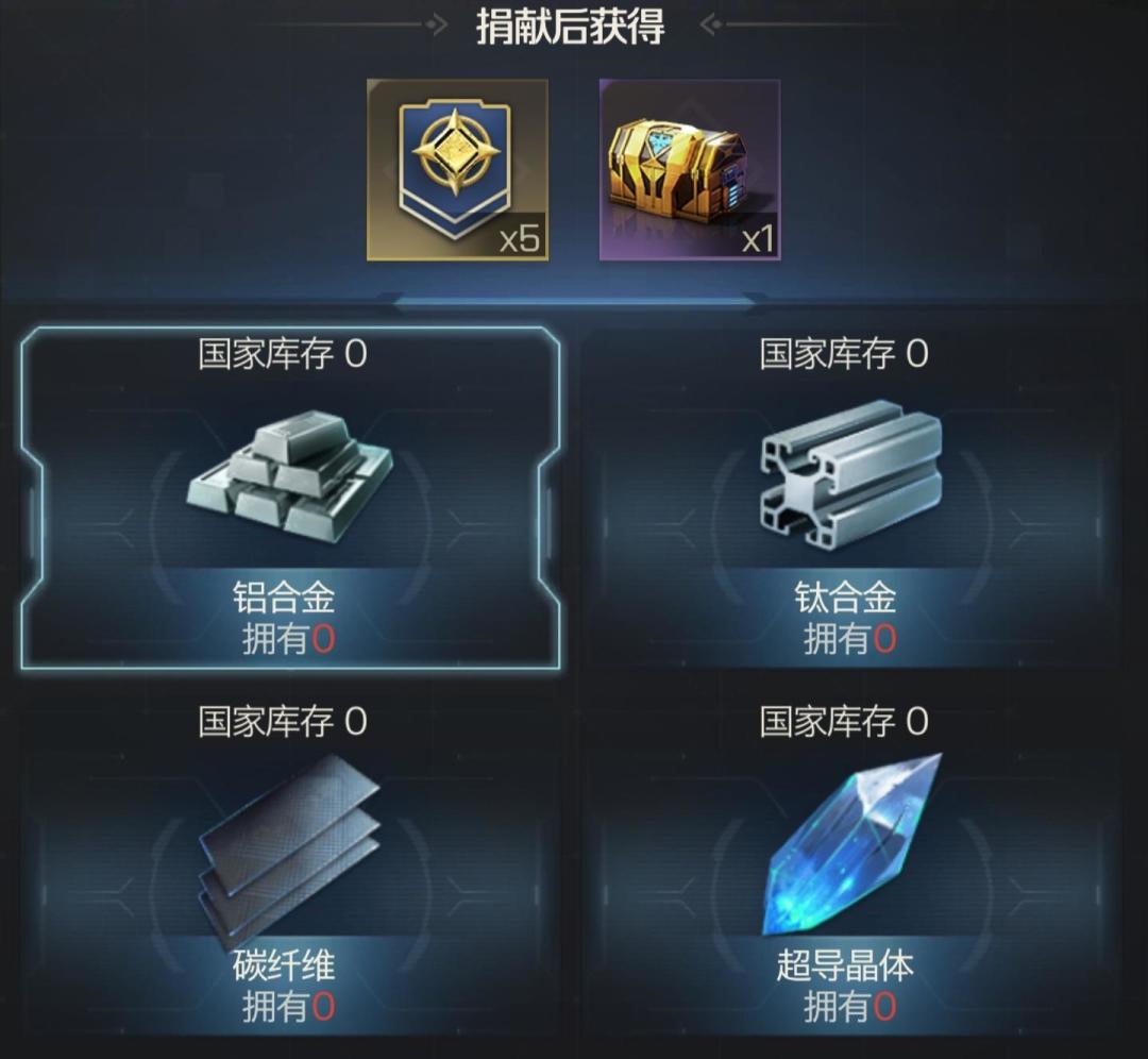 二、飞船的改造需要消耗盟军物资中心中存储的飞船改造专属材料。四种材料分别是铝合金,钛合金,碳纤维和超导晶体。需要注意的是,获得的材料会先存入个人背包, 可随时在盟军物资中心中捐献。捐献专属材料可获得功绩奖章和功绩宝箱。