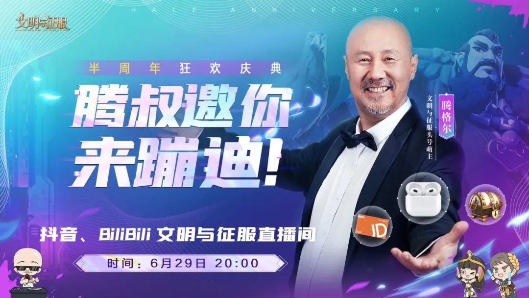 6月29日20:00,锁定“文明与征服”直播间,赢取超多实物好礼吧!