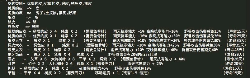 (图中有错误,做劣质皮衣要8个劣质毛,做蓑衣只要2个干草,做护腿要4个劣质毛,但这不是本帖重点)