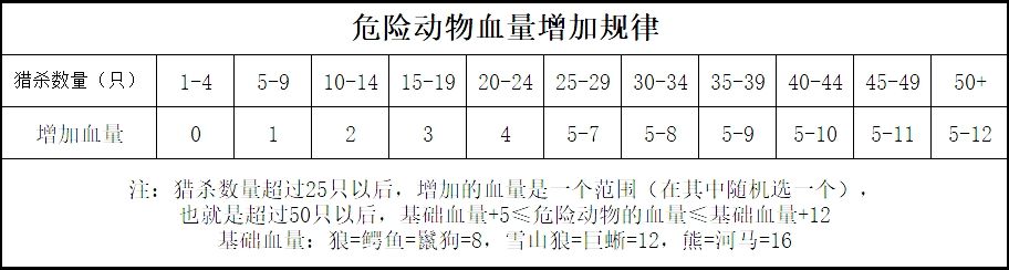 随着你杀野兽数量的增多,野兽血量也会逐渐增多,具体机制如图(图片来自小雨加雪)