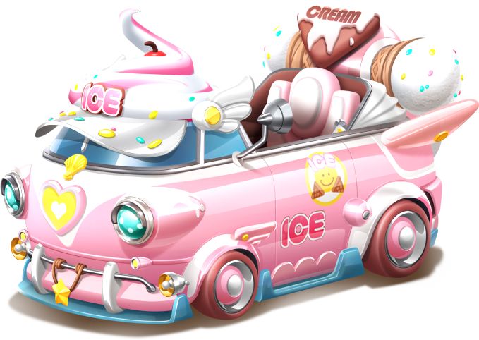 梦幻的粉、黄、蓝撞色十分吸睛,车头点缀爱心可爱满满。车身装饰的冰淇淋,在炎炎夏日为车手们带来超甜的凉意~