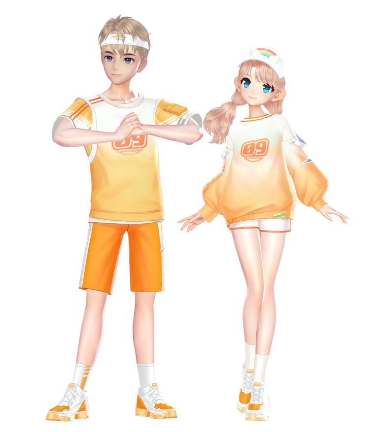 ▲盛夏橘沙套装橙白套装似北冰洋汽水般沁爽心脾,白色发带运动感十足;长袖卫衣搭配短裤活力满满,双马尾更显青春烂漫~