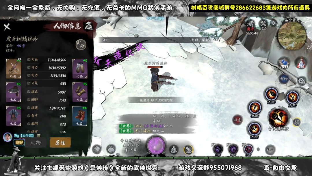 这个属性我是用了2分50秒打完的,可以稍微比这个属性低一点但是不能低太多,我选择双兵的武功来过是因为双兵专精伤害比其他武功高,但是如果你有特别好的其他极品武器可以弥补专精上伤害不足的问题,也可以用其他武器。
