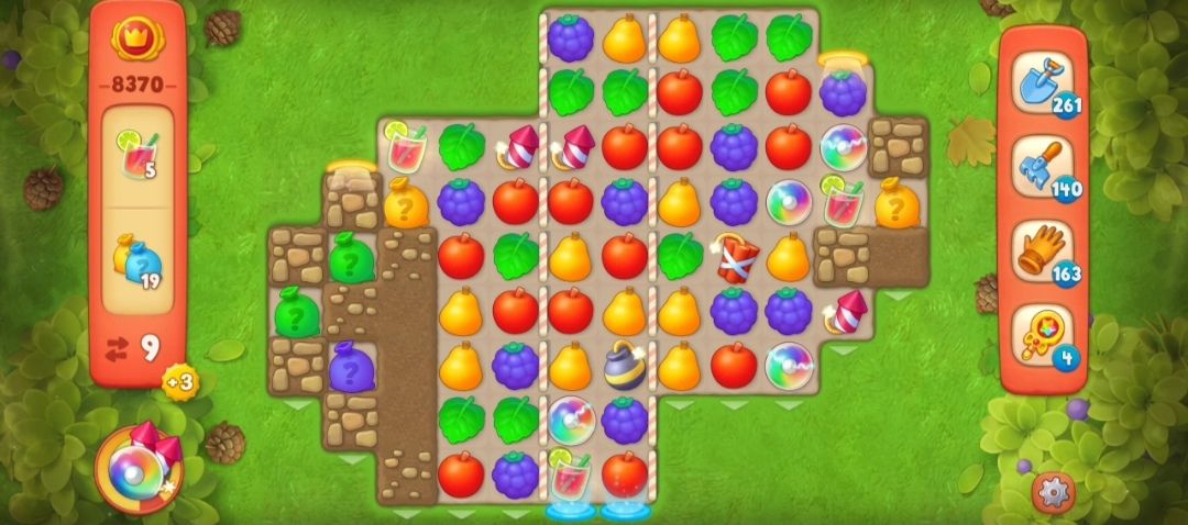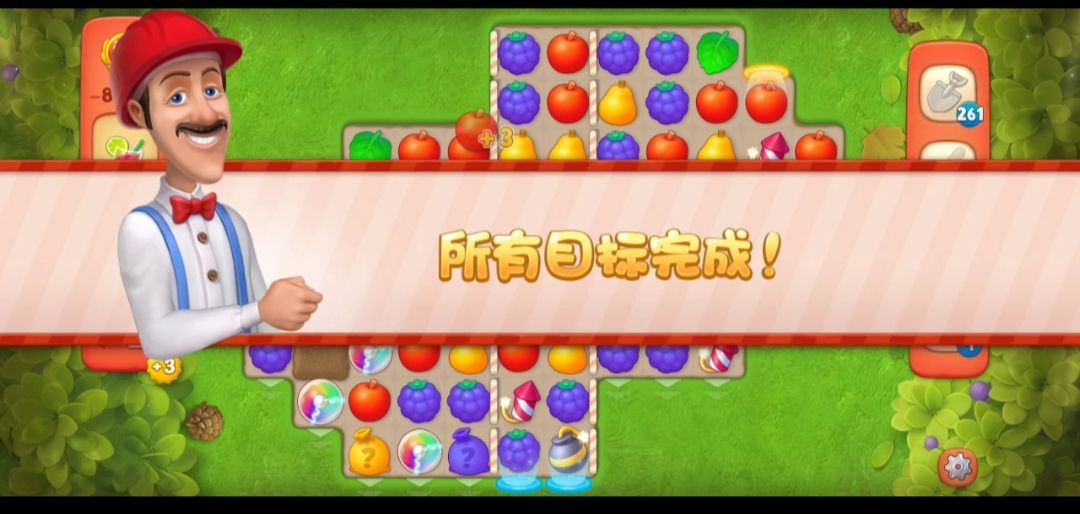 ⑥把所有皮纳塔都分解成糖果,就可以直接用彩虹全部消除掉,剩下的橡实很简单就可以元素匹配消除。