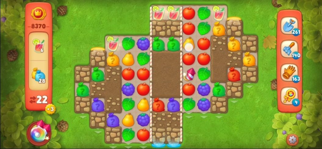②这一关的土块有三种,一种是不带小石子的纯土块,只需要一次消除,一种是带小石子的土块,需要消除两次,最后是带大石头的土块,要三次元素匹配才可以消除。