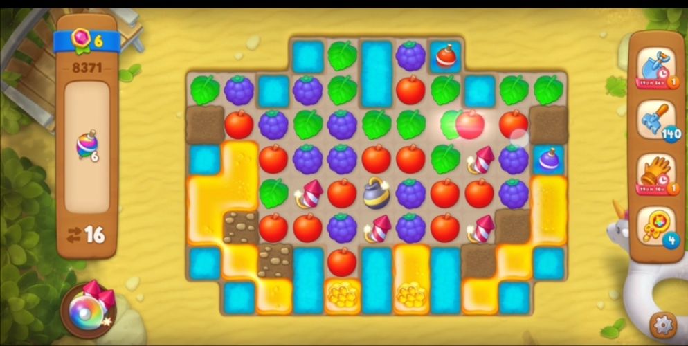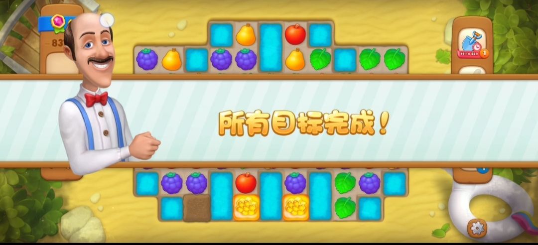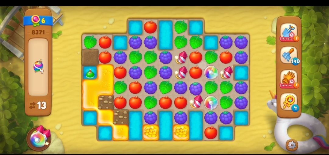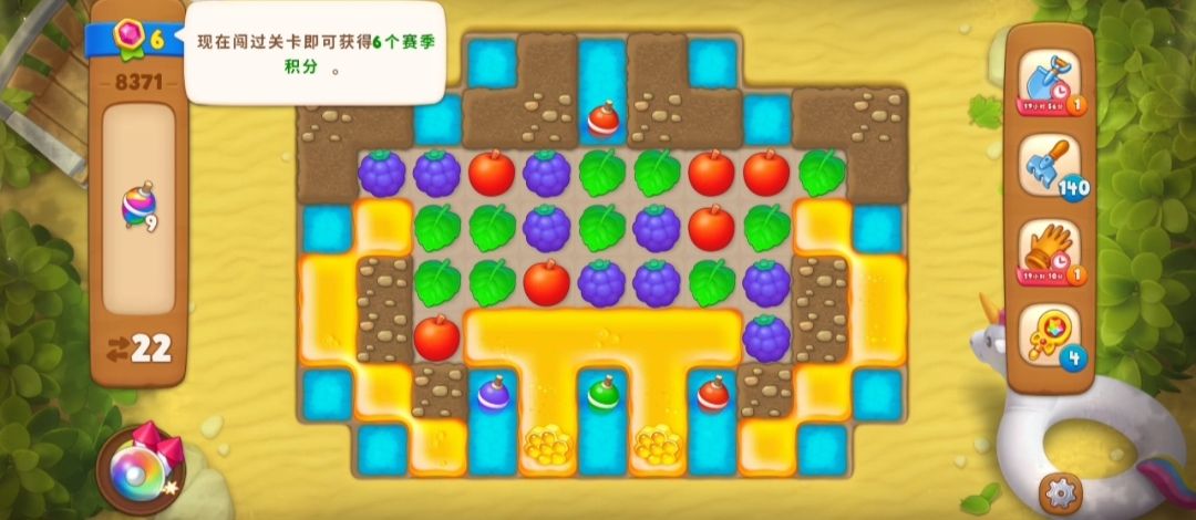 ④要收集浮漂需要在浮漂旁边用与浮漂相同颜色的元素匹配交换,就可以收集浮漂,收集浮漂之前清理完土块和蜂蜜。