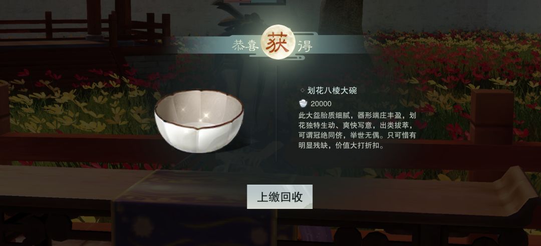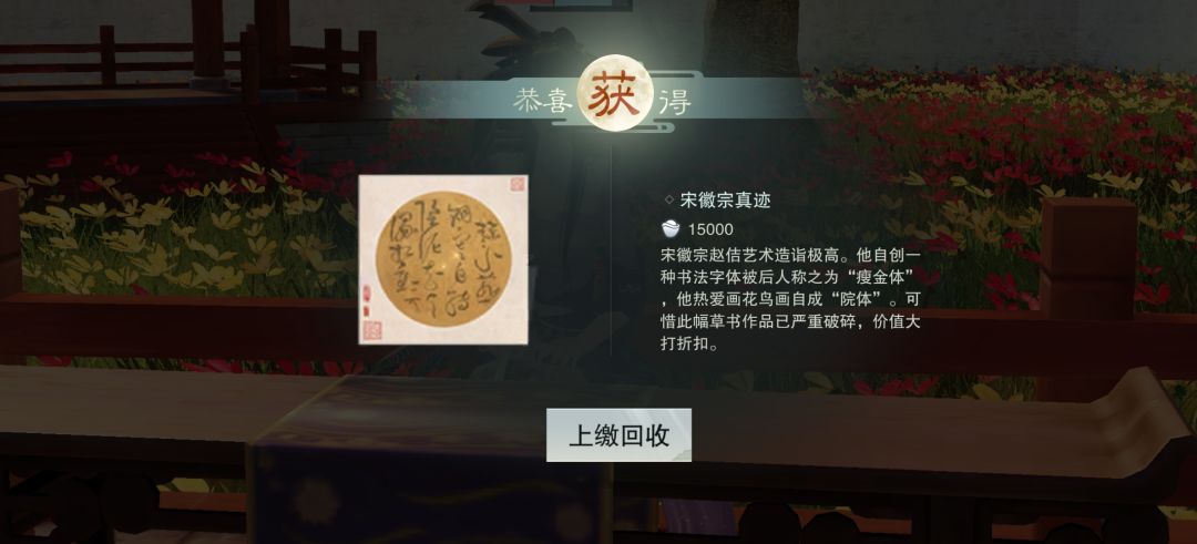 鉴定完后白色字画(1.5w银两)、绿色瓷器(2w银两)、蓝色瓷器(4w银两)成功