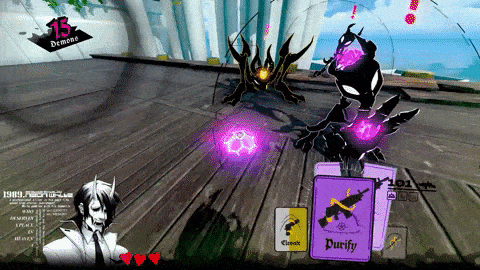 《霓虹白客》是一款将卡牌游戏、跑酷游戏和FPS结合起来的奇怪作品,而且它将这三者结合得非常出色。游戏的基础玩法是FPS,但你的武器不是枪械,而是一张张卡牌。
