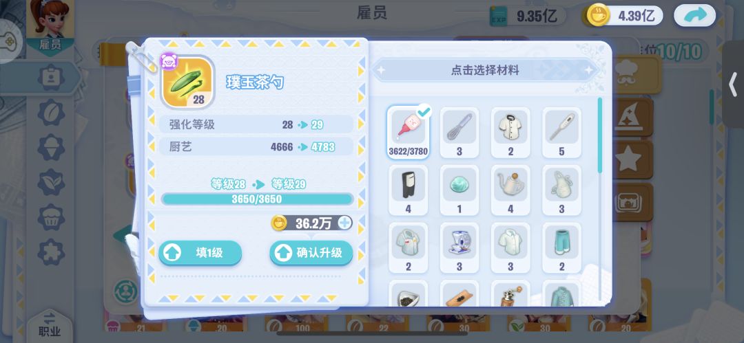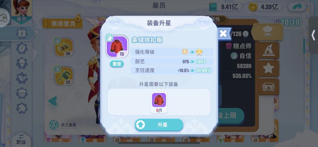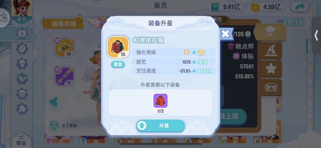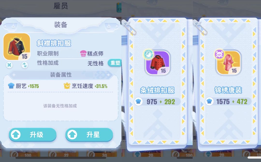 3.装备升2星消耗的资源是1星的1倍,但是厨艺增长并没有达到一倍差,所以先优先给能升1星的装备升1星,再考虑给装备升2星。