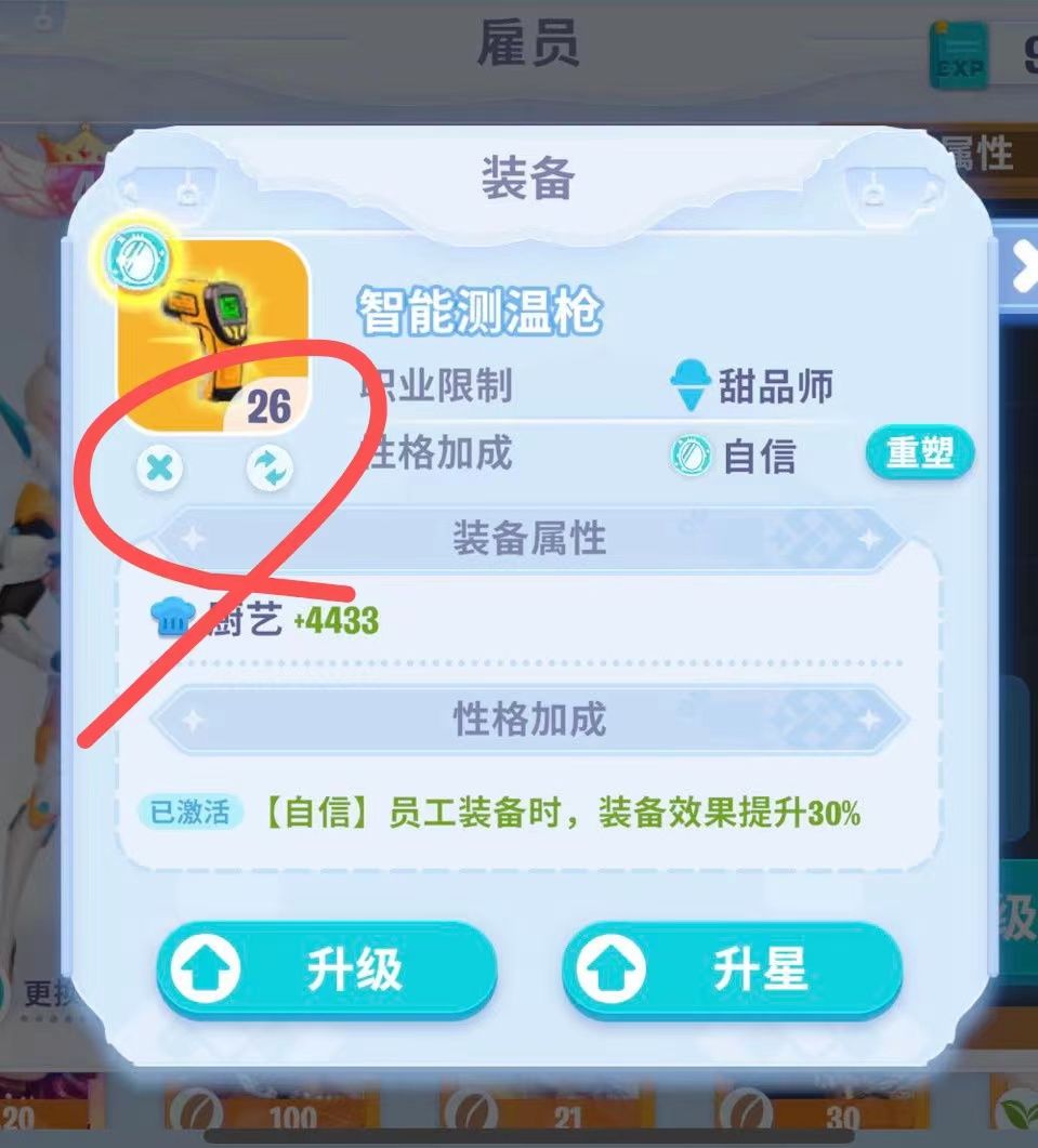 小店前期员工升星升冠增加的厨艺都不高,主要靠装备拉开差距。