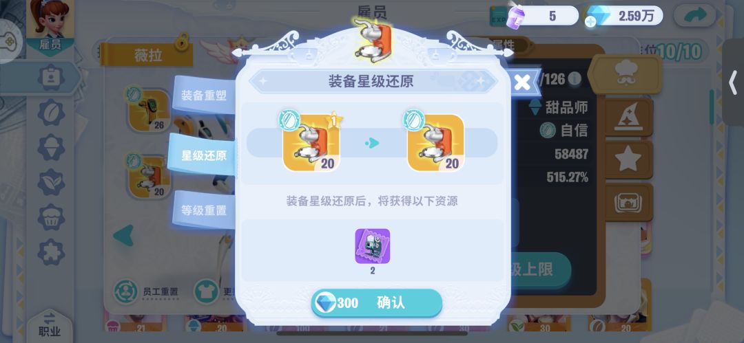 消耗300钻石可以给升过星级的装备进行星级还原。