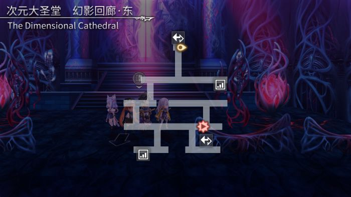 ※至此,在次元大圣堂地图中所有头顶宝石发光的墙壁,均可被打开形成通路;其中红色闪光表示有强制战斗
