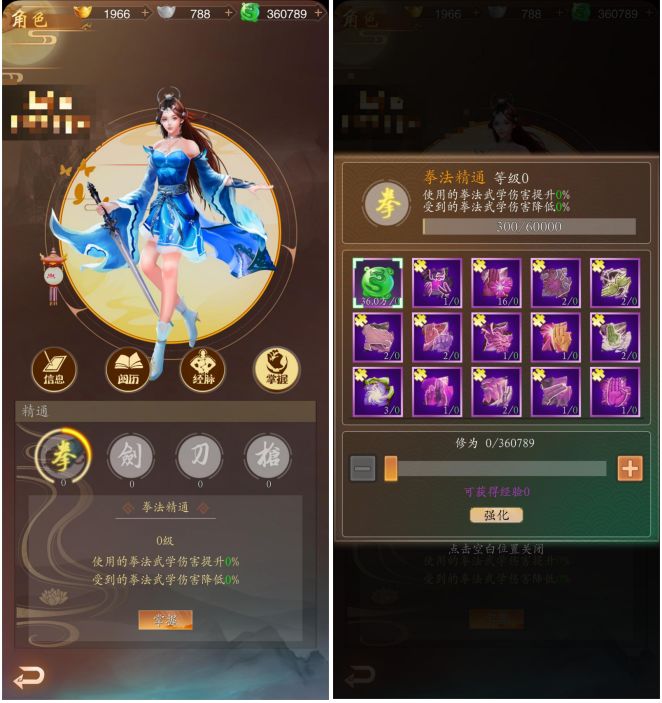 是不是觉得通过武学和装备提升的战力还不够,还可以通过角色里的阅历、经脉和掌握来提升更高的战力哦