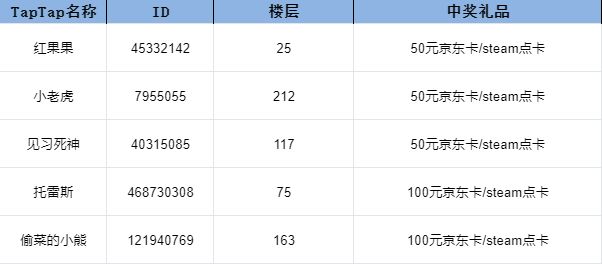 以下为世上英雄父亲节福利活动TapTap中奖名单及抽奖凭证:
