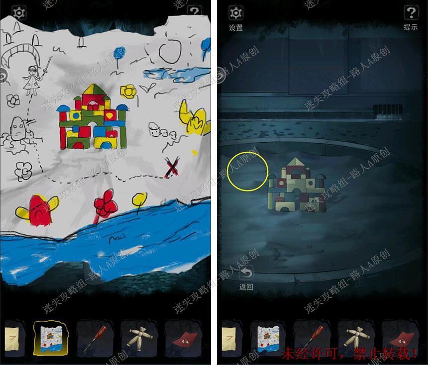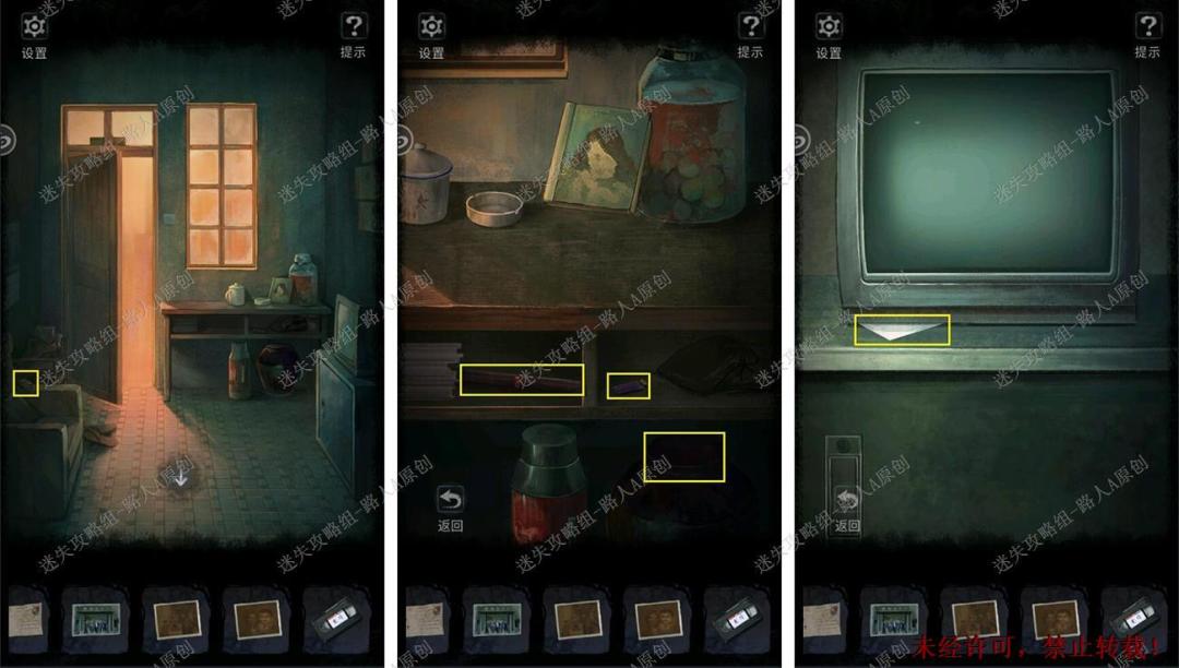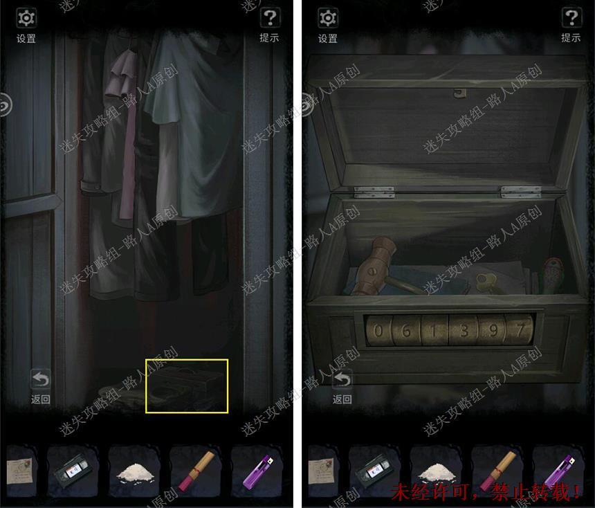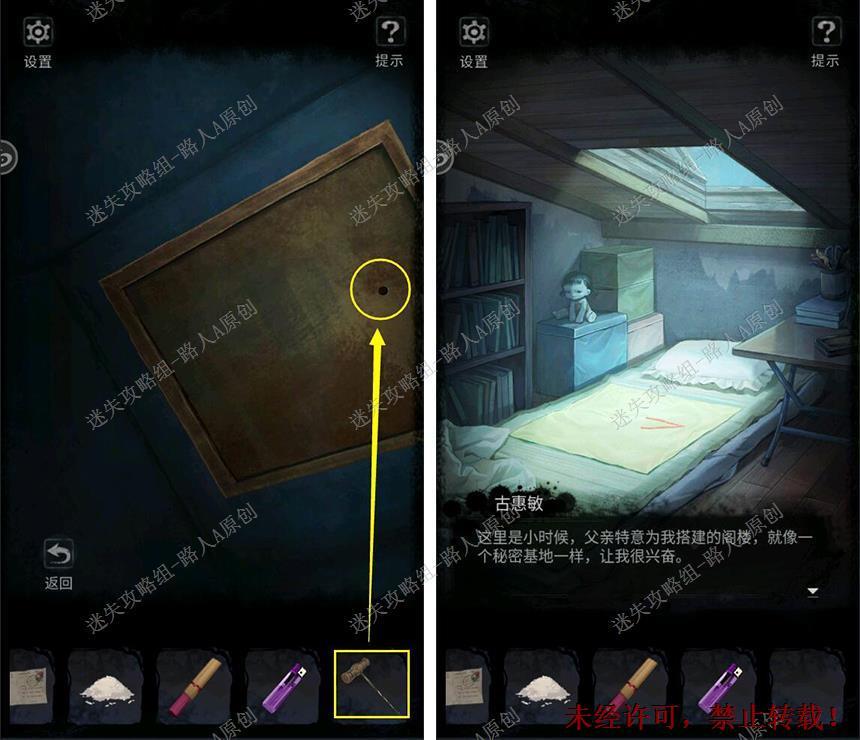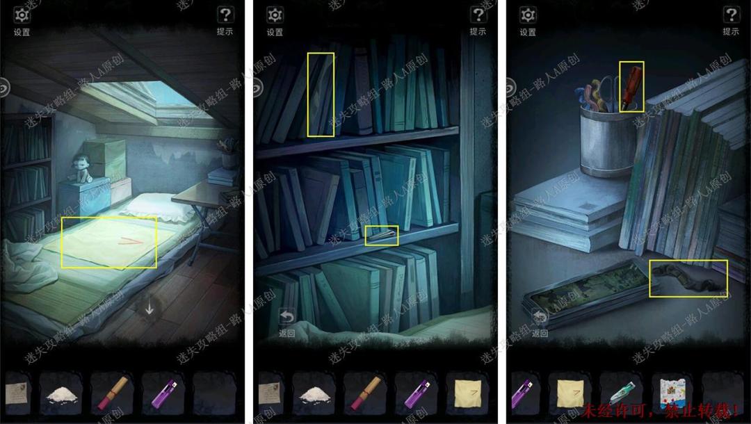22. 在阁楼拾取【黄色的布】、【指甲刀】、【藏宝图】、【螺丝刀】、【棉线卷】。37.1