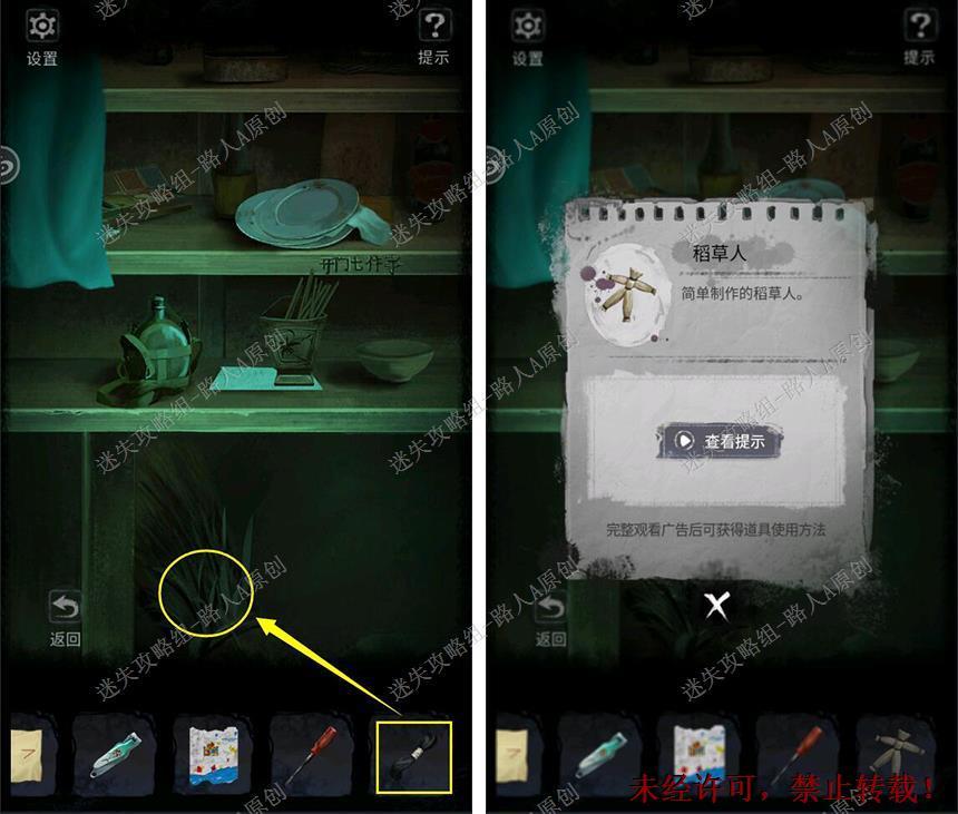 23. 前往厨房,对稻草使用【棉线卷】,得到【稻草人】。38.1