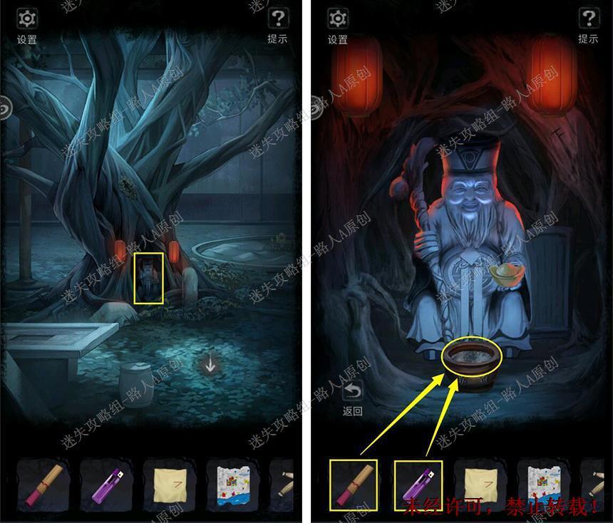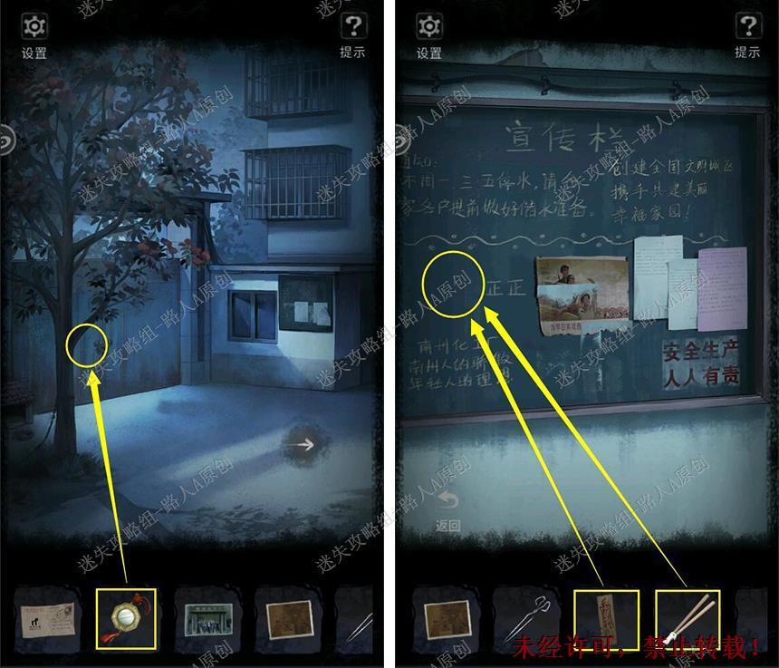 10. 前往小区大门,在树上悬挂【八卦镜】,在门卫室的黑板上涂抹【浆糊】并且贴上【黄符】。25.1、25.2