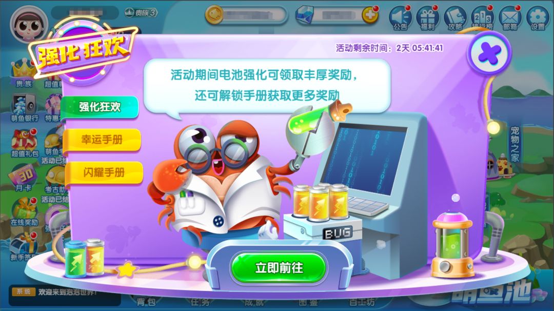 各位馆长,元气七月即将开启!泡泡还带来了新爆料,强化狂欢活动和钻石首充双倍重置活动将在本月进行,超多奖励等你领取,这波活动一定要蹲住啦!