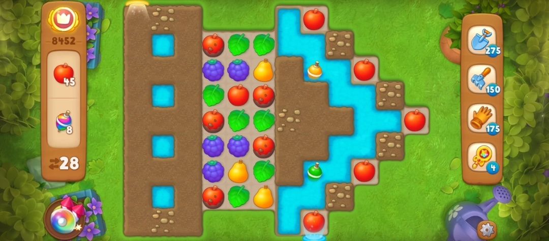 ①先观察一下开局,这一关一共是28步,过关目标是苹果和浮漂。