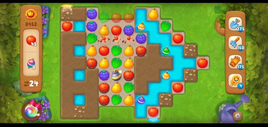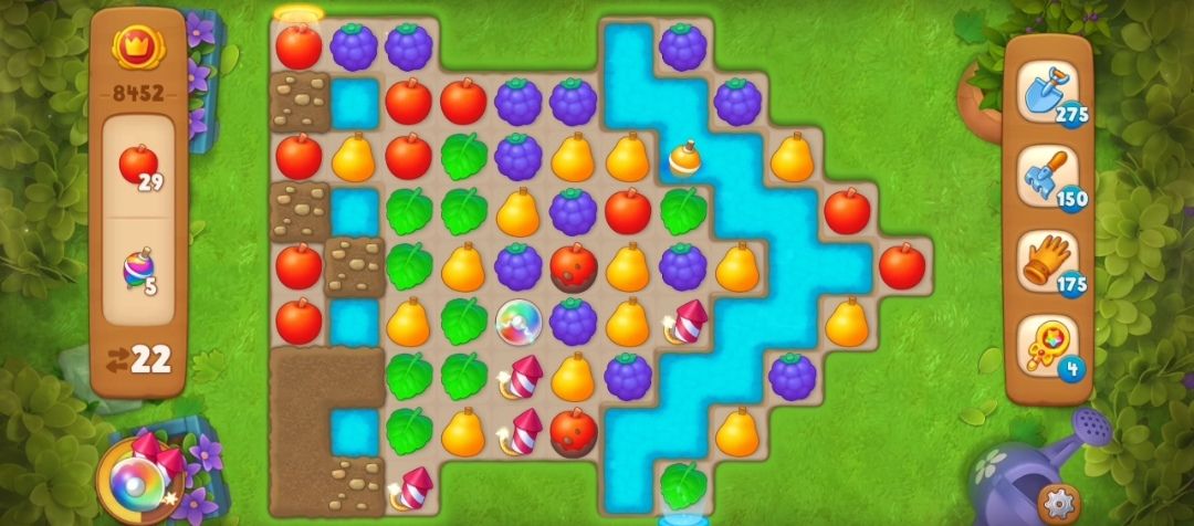 ③这一关的苹果有的有淤泥,有淤泥的苹果需要和其他苹果交换匹配,清除淤泥,有淤泥的苹果不算收集数量。