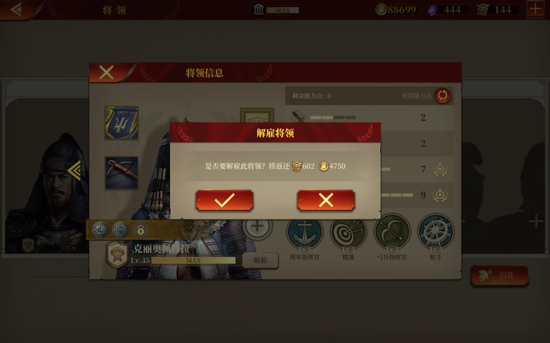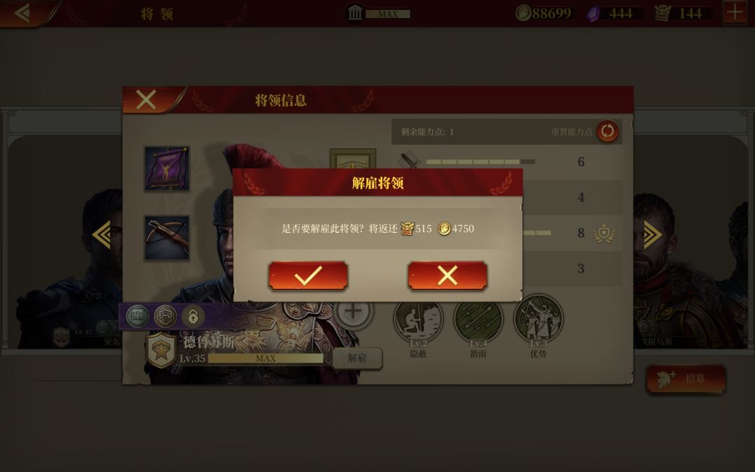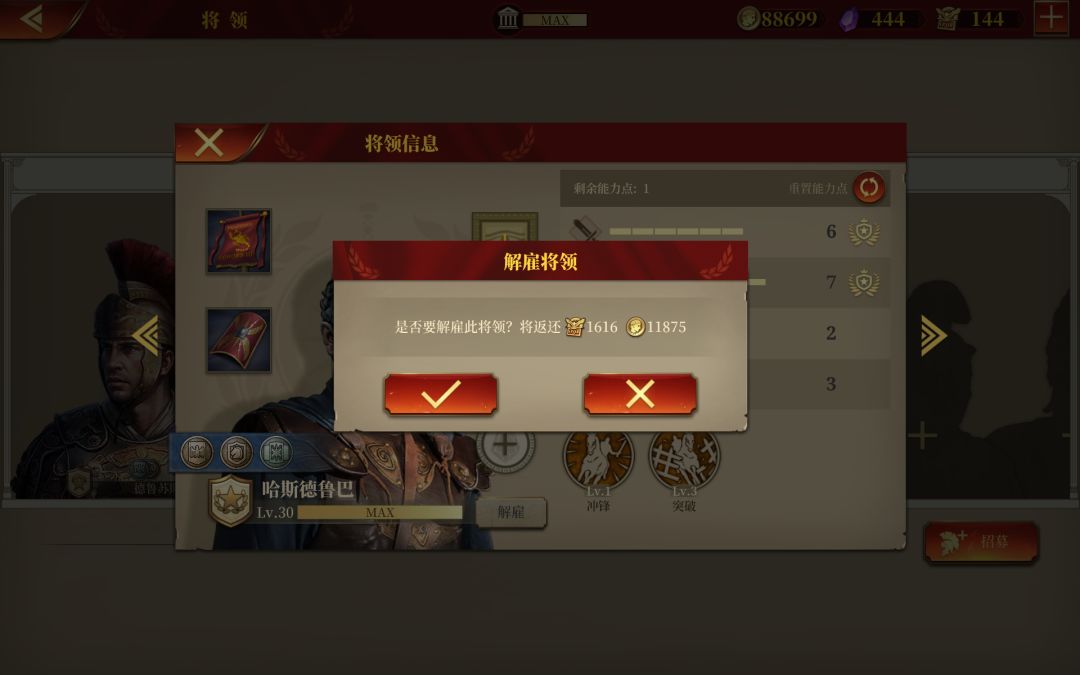 兵种增强,韩信顺带的增强了,想转弓指要多少勋章,解雇哪两个比较划算,只有十四将领,还要留人打竞技场,通关。史诗还剩三关,传奇打到牛头人宝石那关没打。还有六级兵能升几个,我升了韩信虎贲汉尼拔泥头车贝利战车兵和标枪兵,指挥官兵种的只能到五级。