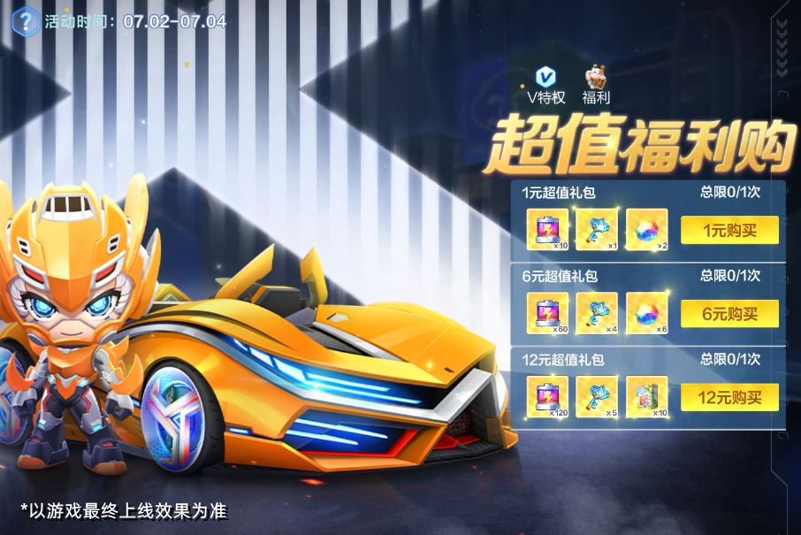 7月2日-7月4日,福利站将限时开启超值福利购活动,活动期间可直购超值礼包,支付成功后可立即获得不同档位电池、神秘钥匙、星愿结晶、宝宝礼物盒等礼包奖励。直购金额自动计入V积分,并支持激活招财猫和进宝猫。