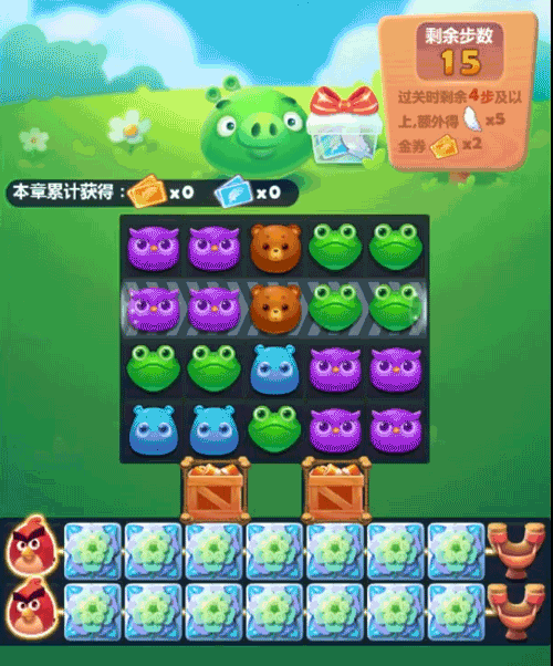 关卡中还可能出现鞭炮箱,只需旁消1次,就能激活鞭炮,助力小鸟前进2步~