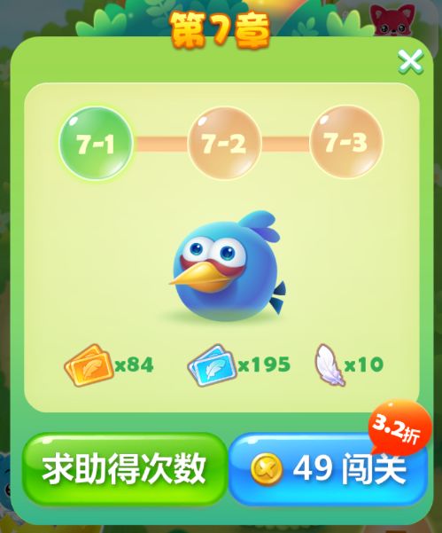 只有连续通过3小关才可获得全部羽毛及奖券,中途失败的话只有2个羽毛哦~