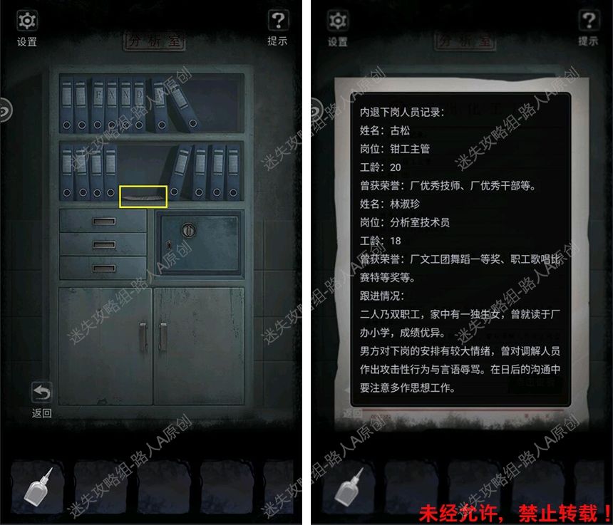55.前往分析室(锅炉室往左),查看文件柜里的内退下岗人员记录。55.1