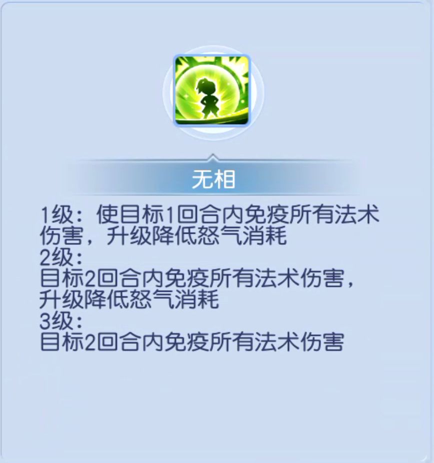如何破解这两个职业的毒打?那么首先就要通过特技进行下手了!我们来看法系职业!众所周知灵盾是克制法师的最强技能,但是特技需求太高,技能不够灵活还没能够施展开来就已经凉凉!另外就是伙伴的法术防御偏低,就算有灵盾加持依旧很尴尬!掏出你压箱底的无相!让你和宠物在对面法师的狂风暴雨的输出下安然无恙!