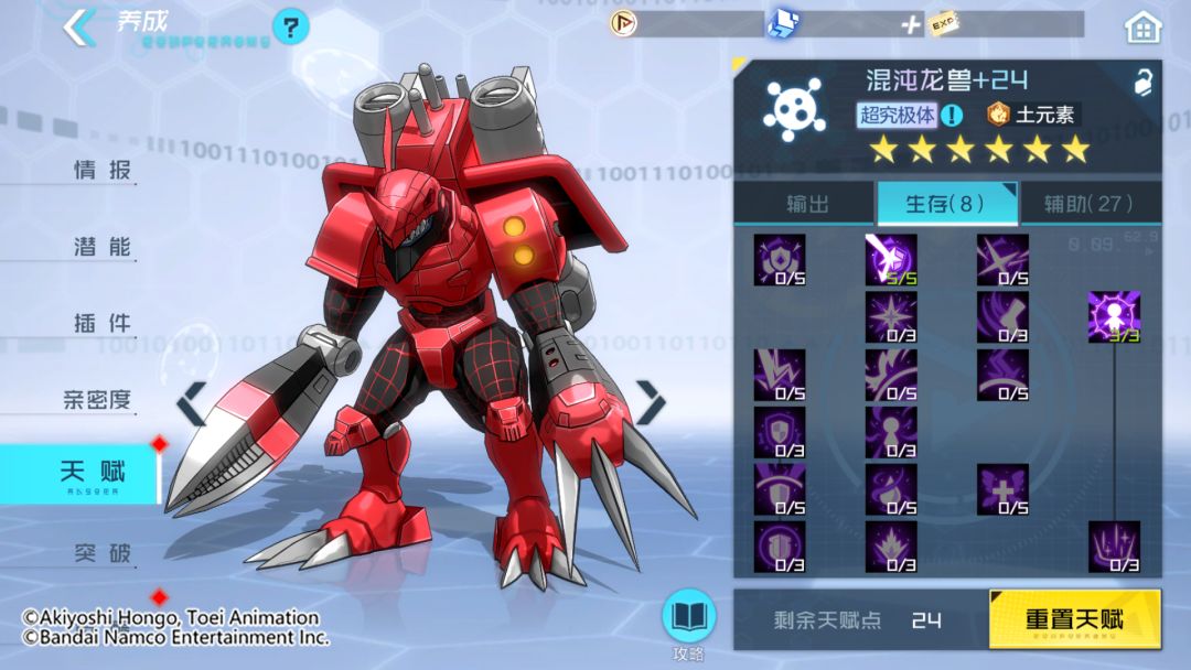 通过技能解析可以看出,混沌龙兽拥有攻防兼备的技能特点,被动技可为自身提供伤害减免,并在受到攻击时获得额外伤害减免,通常技则是能够提升自身防御和命中,同时还有概率降低敌方目标的攻击和防御属性。奥义技可以在对目标造成伤害后,为其附加行动禁止状态。得意技更是能在受到攻击时,驱散攻击者增益状态,并使用通常技反击敌方全体目标,同时百分百触发技能的特殊效果。可以说是非常强大的控制类型数码宝贝,相信混沌龙兽在队长的阵容编队里会有不错的表现!