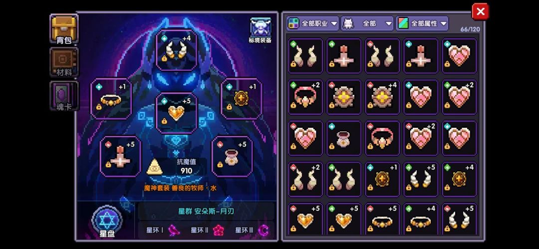 激活位置放克罗赛尔魔女魂珠和斯托拉丝魔女魂珠,其余位置放5颗安度魂珠或者2颗安度3颗克罗魂珠,次选放水系牧师和战士的魂珠,总等级达到18级可激活水易伤效果