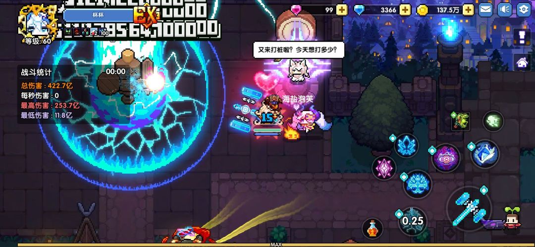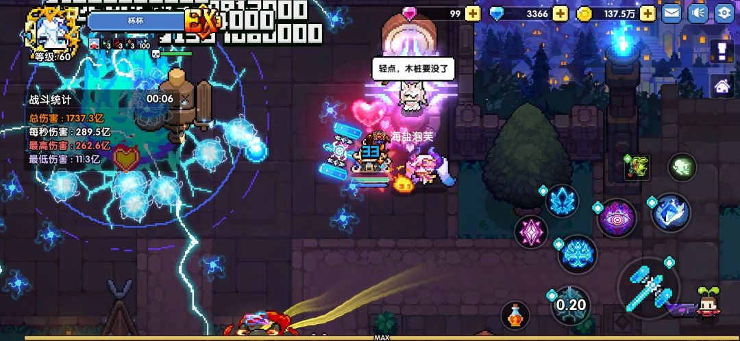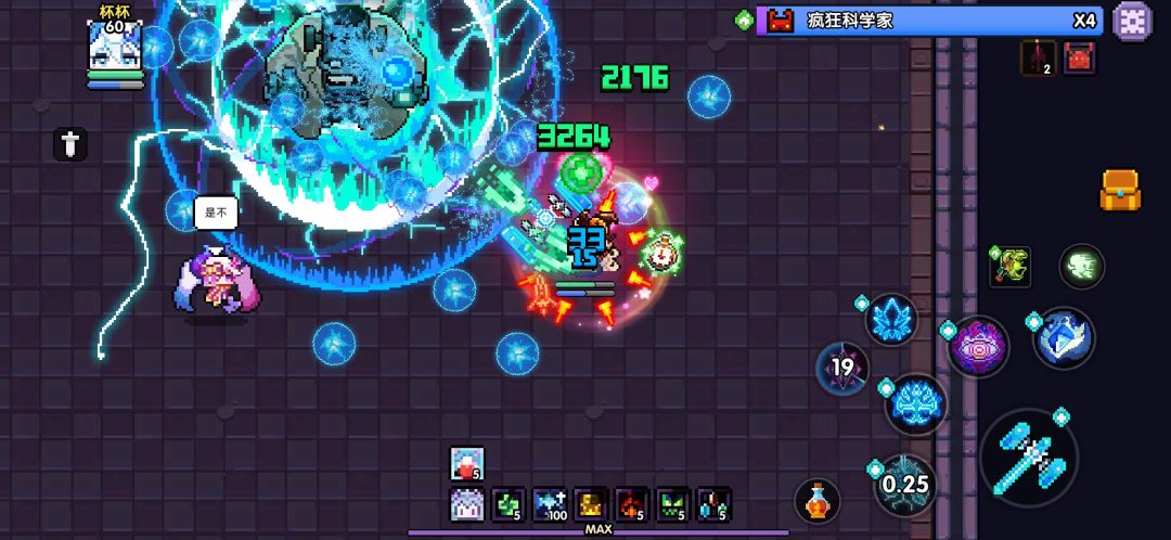 3、由于世界boss的体力较大,锤子敲出的雷球一般能全吃,这个为勇者的走位提升了一点的容错率,不过还是没什么事站着就好,实际得根据boss的移动来调节自己的走位