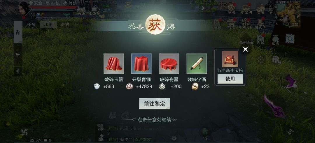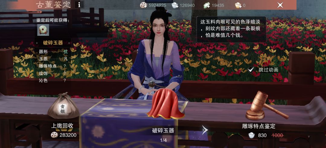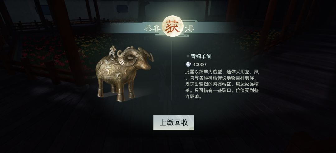 鉴定完后白色瓷器(1.5w)、蓝色青铜器(4w)成功
