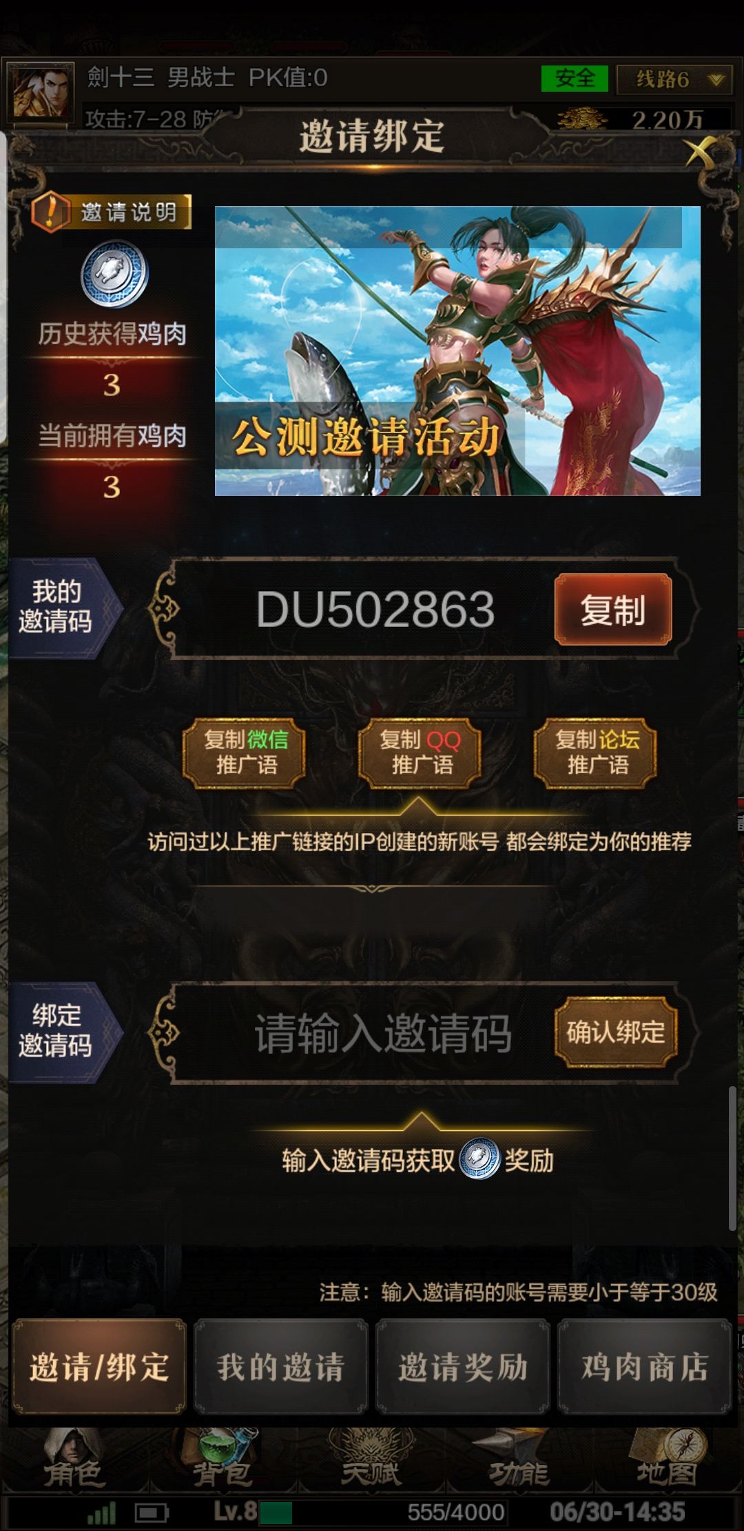首先自己的邀请码镇楼,填了能领10个鸡肉,换点双倍啥的。