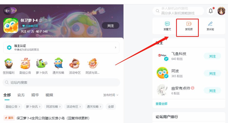 活动期间,玩家可在【保卫萝卜4】社区论坛发布任何带有保卫萝卜4的视频。在帖子标题里带上#全民都在保卫萝卜# ,即可参与活动。