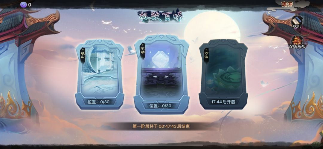 3.极限突破阶段:重置3个挑战区域,在第1、2、3天时开放一个挑战区域。每个区域层数上限提升至120层,战斗胜利可获得百炼币