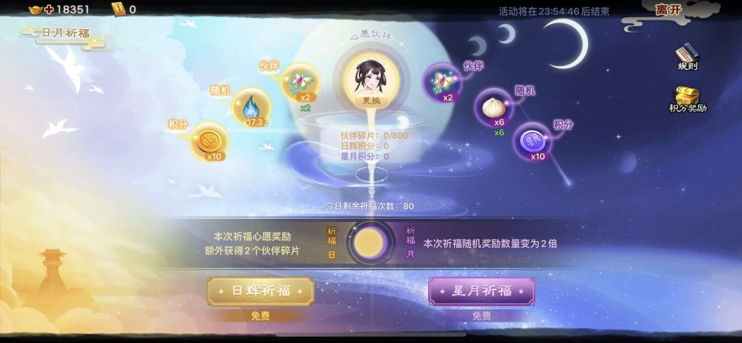 2.每次祈福都可获得所选伙伴碎片,即为【心愿奖励】
