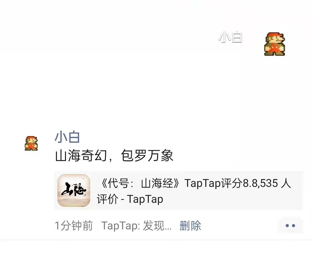 预约和分享【代号:山海经】主页or本活动帖至微信朋友圈orQQ空间,并附带文案“山海奇幻,包罗万象”赢定制周边![[嗒啦啦2_星星眼]](https://img.tapimg.com/market/images/bb08c5f7fa1ffa7d19f3cd9c4ce30ca1.gif)