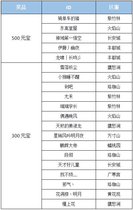 》》元宝奖励将在名单公示后的7个工作日内发放,若参与活动时提供的角色信息有误则视为放弃奖励。