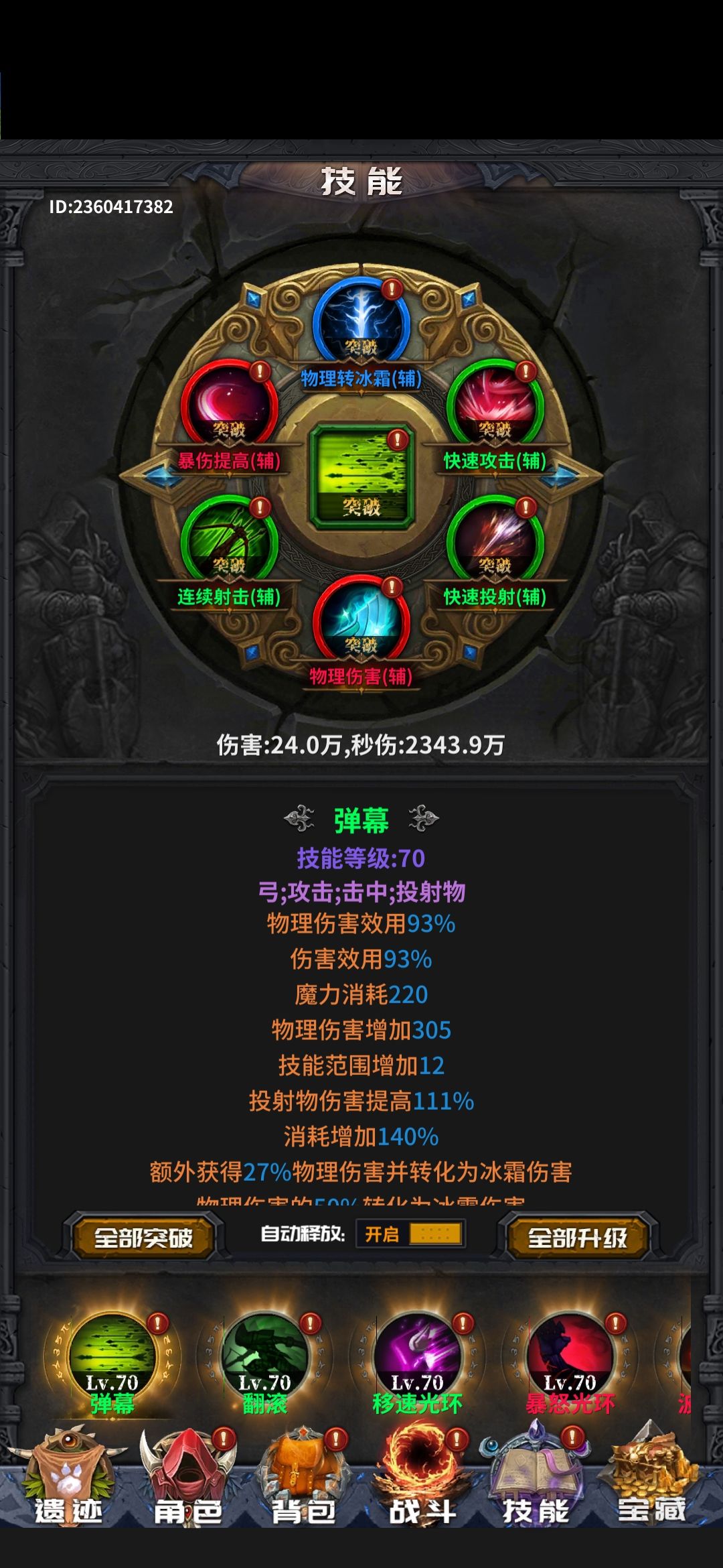 这是普通刷图技能,如果想打木桩增强伤害,把快速投射换成冰冻。同样,如果是转的闪电,想打桩时增强伤害,把快速投射换成闪电穿透。如果普通打图,伤害又够的情况下,可以快速投射换成多重射击,清小怪会快一点。其余请自行研究调整。