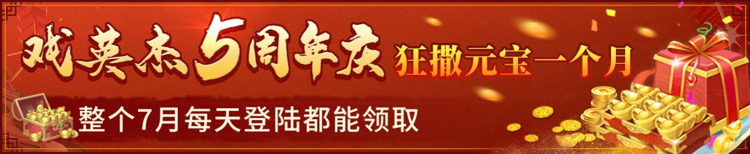 今天是6月最后一天,明天迎来2022年7月是正直《三国戏英杰传》5周年周年庆的日子,为感谢新老朋友的支持与厚爱,项目组最终决定给大家送福利,决定7月狂撒杰元宝一个月,快来跟随小编一睹为快吧~