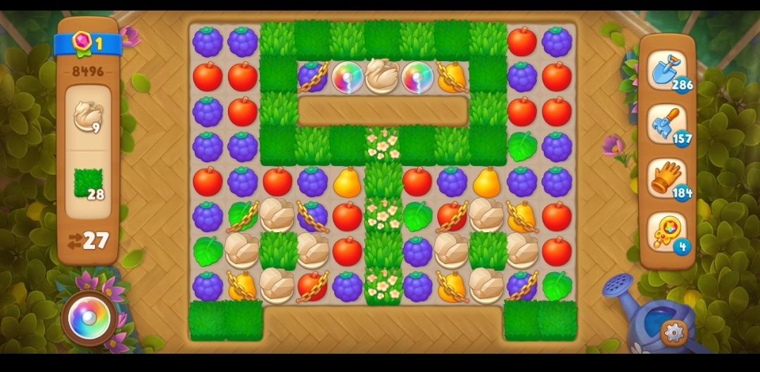 ①先观察一下开局,这一关一共是27步,过关目标是天鹅雕像和草地。
